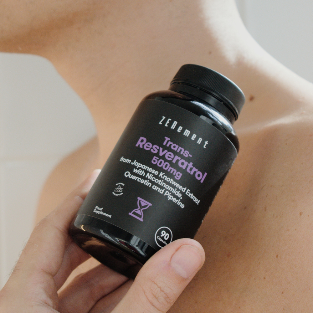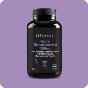 El Trans-Resveratrol, que se encuentra presente de forma natural en la piel de las uvas rojas, es un suplemento antienvejecimiento destacado por la Universidad de Harvard, pionera en la descripción de las vías genéticas que controlan el envejecimiento. En uno de sus estudios demostraron que ratones que habían sido alimentados con Trans-Resveratrol habían aumentado su esperanza de vida un 25% respecto al grupo alimentado con una dieta estándar (control).